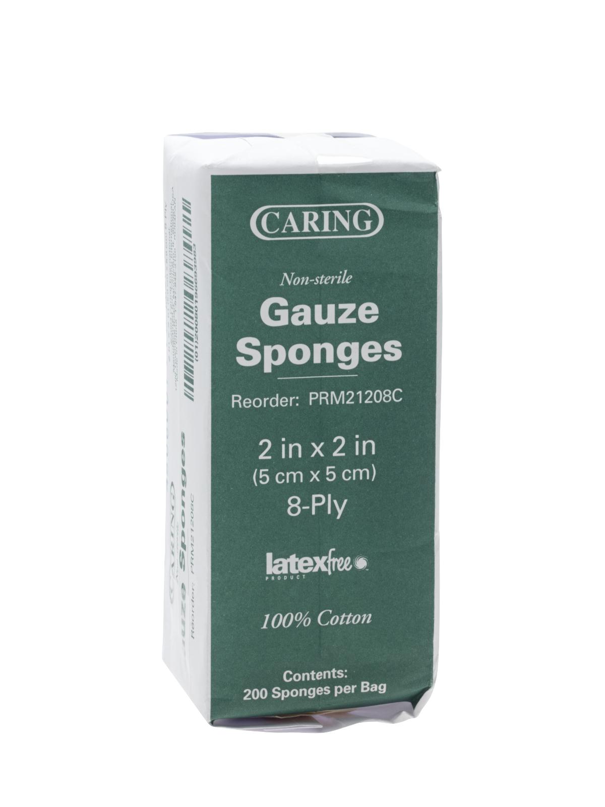 Description: Caring Gauze Sponge 4X4, 8PLY, NS 200PK*